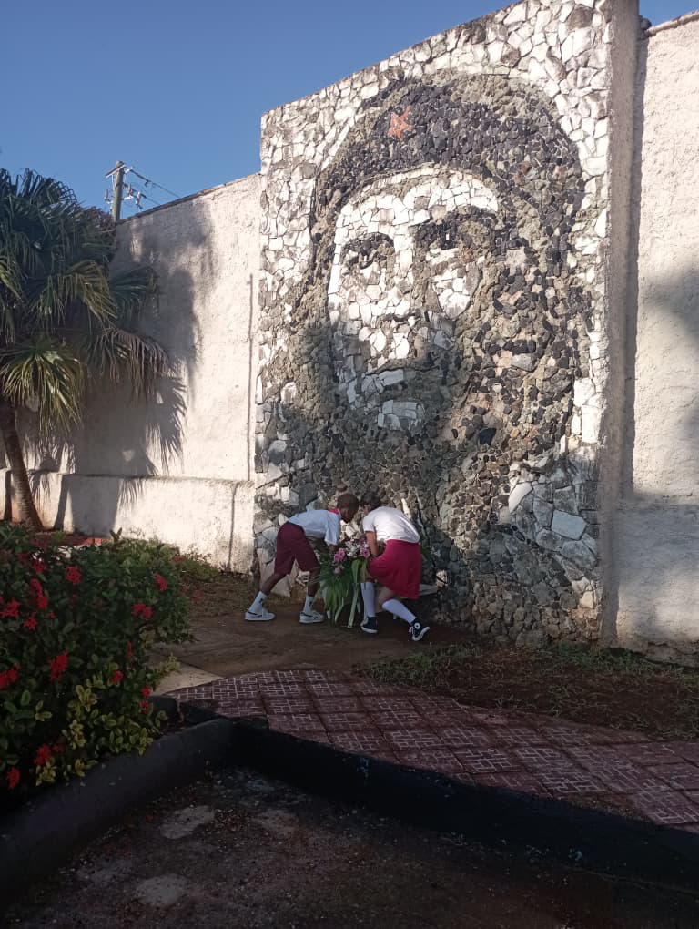 En el parque Che Guevara, ubicado en las cercanías del puente de Tirry, pioneros, maestros y autoridades del municipio homenajearon a dicho mártir con flores, poesías y canciones, en fecha cercana a cumplirse los 58 años de su desaparición física, el 9 de octubre de 1967.