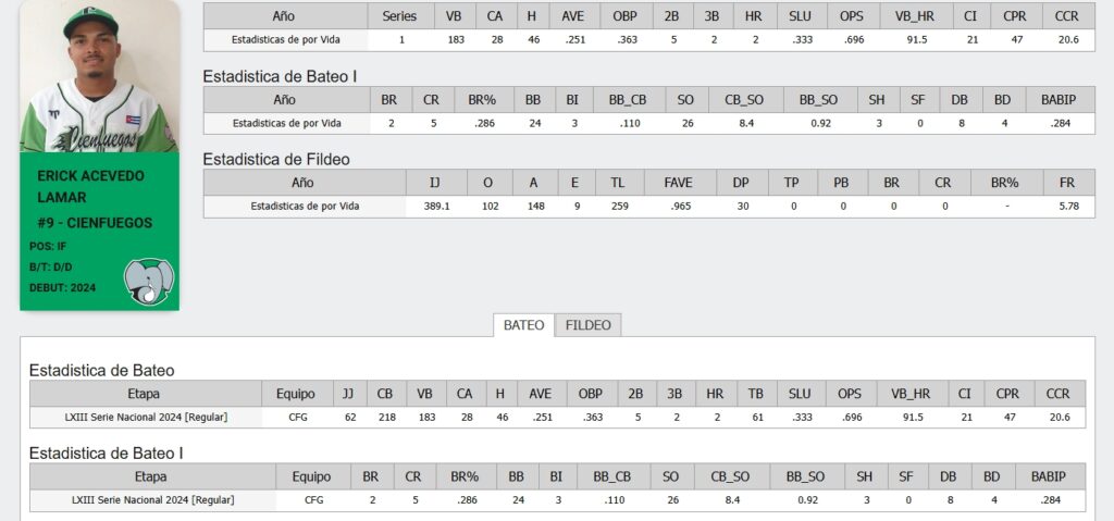 El jugador del infield Erick Acevedo, natural del barrio Pastorita en Matanzas, vive su segunda Serie Nacional con los Elefantes de Cienfuegos y asegura sentirse plenamente identificado con la novena sureña.