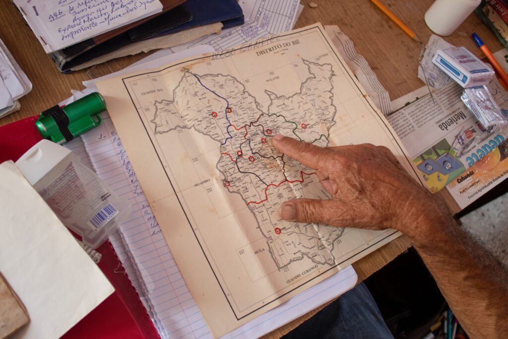 «La mina que se escuchó ahorita siempre encuentra una pierna. Al rato, un soldado Swapo en camilla y una pierna sin bota. Como todos, serio y sin chistar”, lees en voz alta y recuerdas a Paulino Calingue, que, herido de muerte, caminó durante veintidós días a través del monte hasta ser rescatado; o al soldado Fapla que luego de ser operado sin anestesia y el «tienes que aguantar, primo» y «no importa, primo» y siete u ocho puntos en la boca y el trozo de palo para que no la cerrara, cuando termina solo dice: obrigado, y saca una mazorca de maíz y le da al médico un puñado de granos.