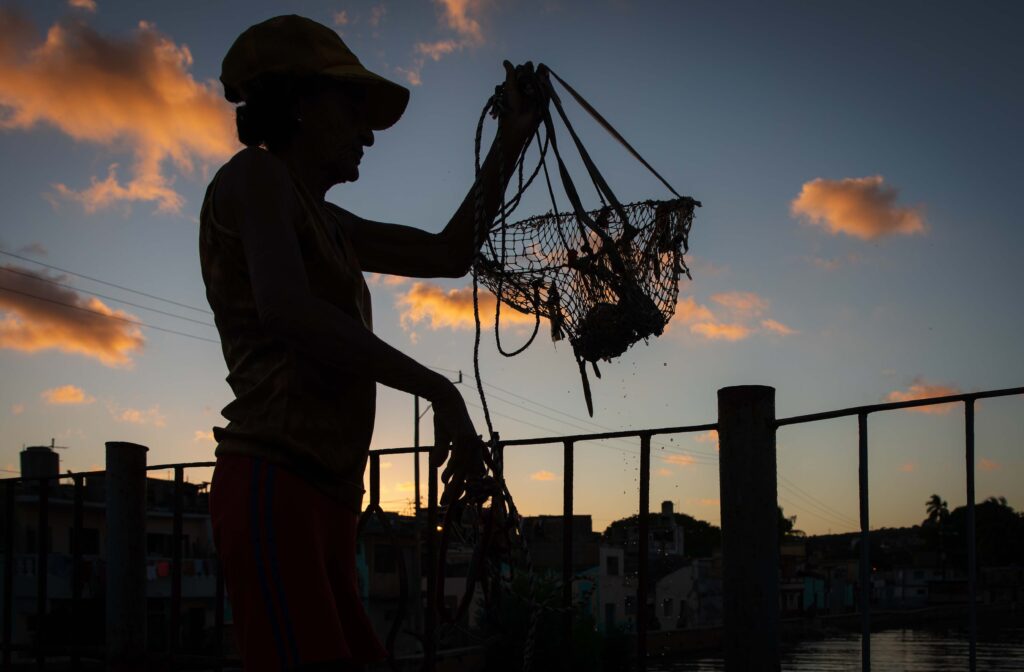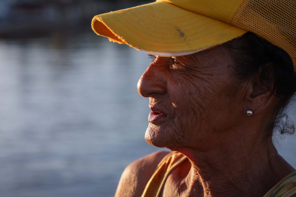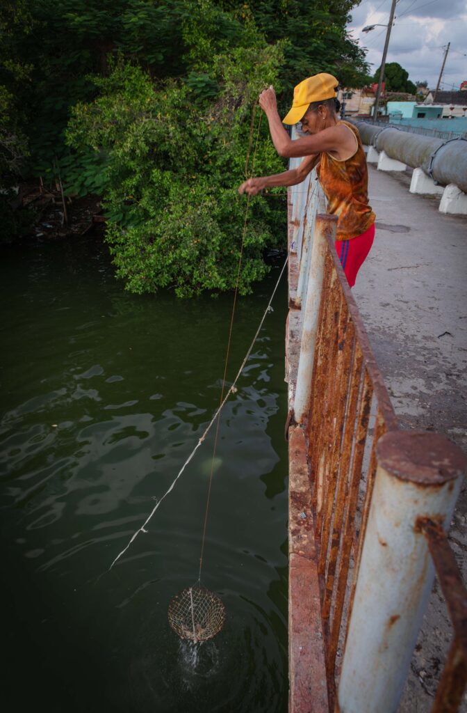 El río, entonces, es refugio. Un respiro que dura mientras el hilo se tensa o se afloja. “Es un entretenimiento. Si tengo problemas en la casa con un enfermo, vengo a relajar la mente”, confiesa. Y uno entiende que este acto sencillo, casi infantil, de esperar que una jaiba muerda la carnada, es lo que la sostiene.
