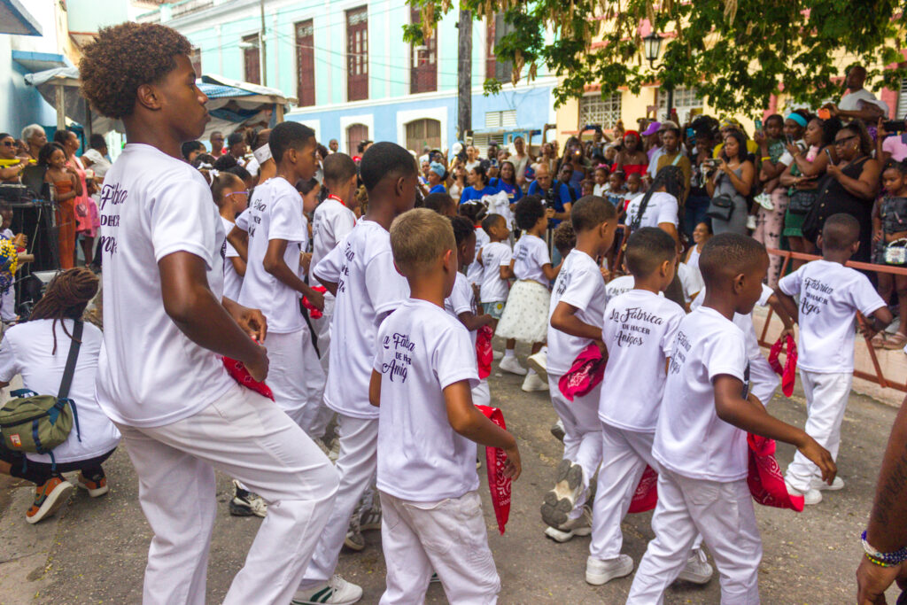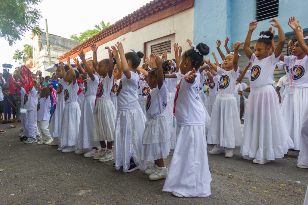 Ataviados con sus trajes, los niños ejecutaron secuencias que mostraron esa fusión: desde el toque de los tambores batá hasta la elegancia del guaguancó, todo con la frescura y la seriedad que los más pequeños pueden imprimir cuando aprenden con amor y rigor.