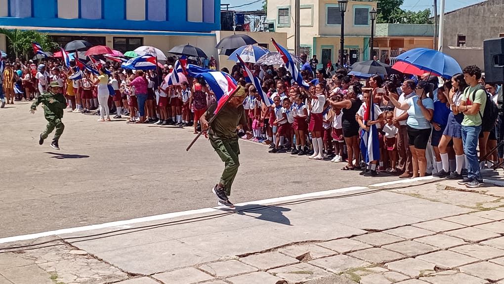 «Hoy apreciamos todo lo que son capaces de crear nuestros niños, adolescentes y jóvenes formados gracias a esta inmensa Revolución», expresó Damaris Amaro Samé, miembro del Buró Municipal que atiende la actividad político ideológica, tras la reedición por los pioneros del Centro Escolar Mártires de Goicuría del histórico asalto.